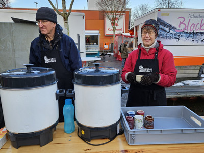 Jeden zweiten Samstag im Monat finden Sie uns auf der Höhe des ASB-Gebäudes mit einem kleinen Stand. Dort bieten wir Ihnen ein kleines Sortiment wie z.B. Kaffee, Tee und Schokolade.