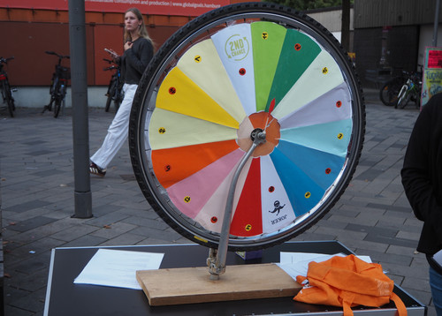 Am Glücksrad bekamen die Teilnehmer*innen nach Beantwortung einer Frage ihren Stempel auf dem Umlaufbogen der Marktrallye, zusätzlich gab es kleine Geschenke.