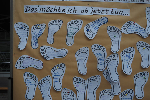 An einem Infotisch konnten sich die Besucher über den virtuellen Wasserverbrauch informieren und ihre eigenen Ideen zum nachhaltigen Leben auf eine Pinnwand heften.