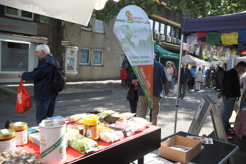 Unser mobiler FAIRkaufs-Tisch mit fair gehandelten Produkten aus aller Welt stand gleich neben dem Infotisch des Nepalteams.